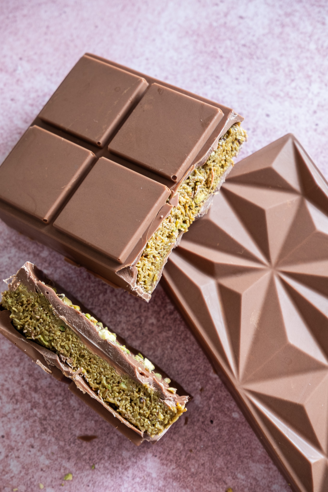 - Przygotowaną masę wykładamy na warstwę czekolady w foremce i równomiernie rozprowadzamy łyżką. Na wierzch wylewamy resztę świeżo zatemperowanej czekolady. Opcjonalnie dekorujemy liofilizowanymi owocami, pistacjami lub odrobiną soli.